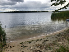 Small grassy campsite without much view of lake. Weedy and vegetated shoreline, not the best for swimming. Remote and private.
